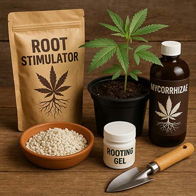 Estimulantes radiculares y de floración como Root Juice, Bud Booster u Organic PK Booster complementan la base nutricional. Importante: llevar pH/EC con precisión, aumentar la dosis de forma gradual y revisar con frecuencia el drenaje.